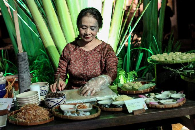 Cô Nguyễn Thị Tuyết, nghệ nhân ẩm thực miền Bắc mang đến nhiều món chay đặc trưng như xôi vò chè hoa cau, bánh trôi, bánh su sê (bánh phu thê)… Theo cô, Hà Nội có bánh cuốn Thanh Trì là nổi tiếng bậc nhất.