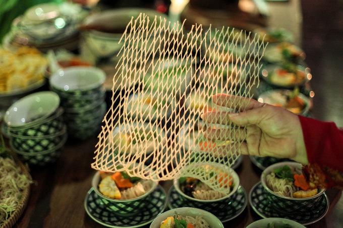 Món phở sắn Quế Sơn nổi tiếng Quảng Nam cũng xuất hiện trong đêm tiệc. Khác với những sợi phở thông thường, phở sắn được làm từ bột khoai mì (củ sắn). Khi ăn, sợi phở không dai như miến, nhưng cũng không quá bột như phở.